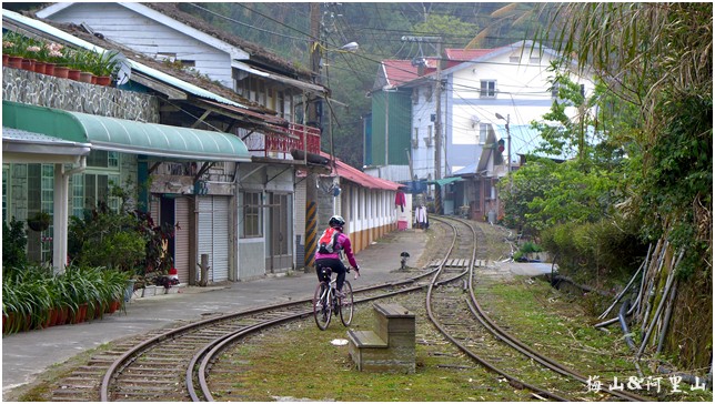 | 騎在舖設的木屑二軌鐵道間, 我們的公路車在這裡也可以輕鬆搞軌啦 ! 這裡真正享受到了阿里山的寧靜 ! |